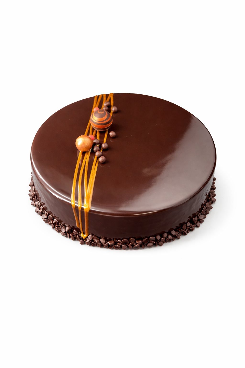 Una irresistible tarta bañada con un glaseado brillante de chocolate y relleno cremoso de trufa. Elegante, intensa y perfecta para los verdaderos amantes del cacao.